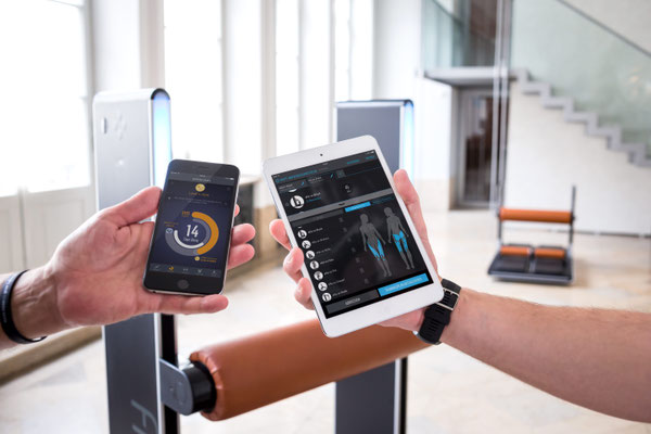 Sie trainieren, begleitet durch unsere technische Geräte Ausstattung. In unserem Trainingsbereich trainieren Sie an einem hochmodernen EGYM Kraft Zirkel.